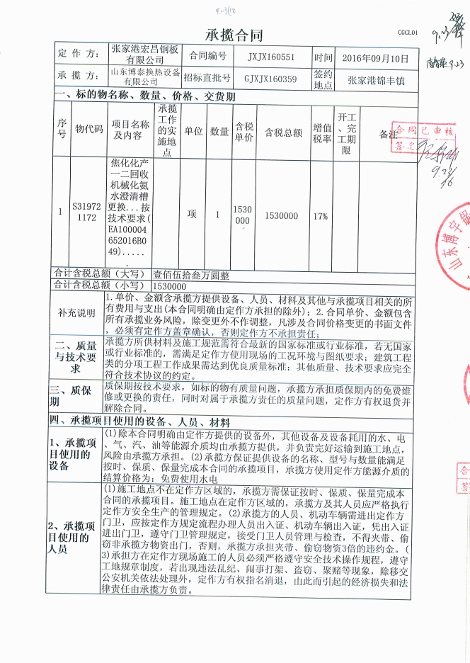 甲方:張家港宏昌鋼板有限公司(焦化廠化產車間,以下簡稱甲方)